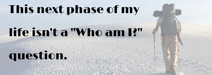 That’s not what I was looking for. This next phase of my life isn’t a Who am I question, but I kept asking it. Although I kept directing it toward God – Who am I, God? – it begged more for an internal answer than one from heaven.