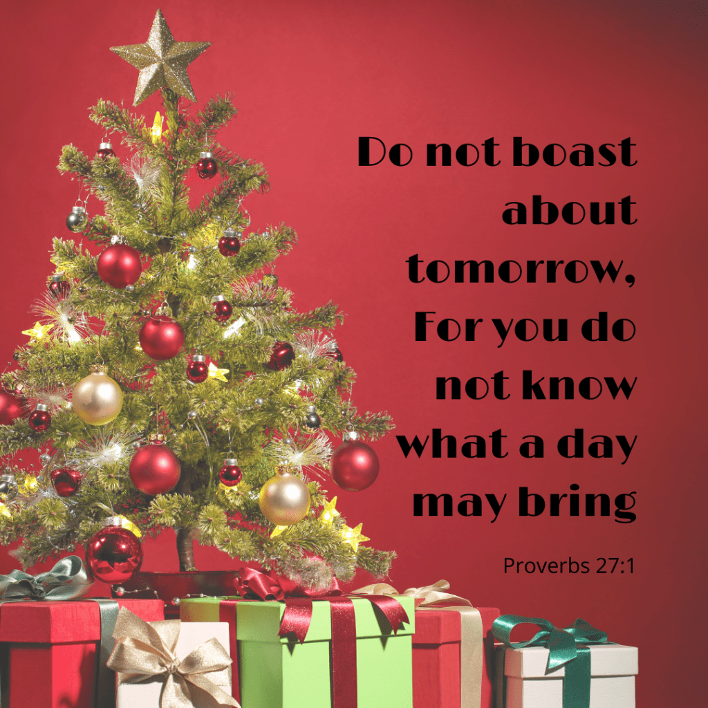 Proverbs 27:1 came to mind tonight as I was listening to my Christmas music playlist on Spotify. Yes, I really was listening to Christmas music today.