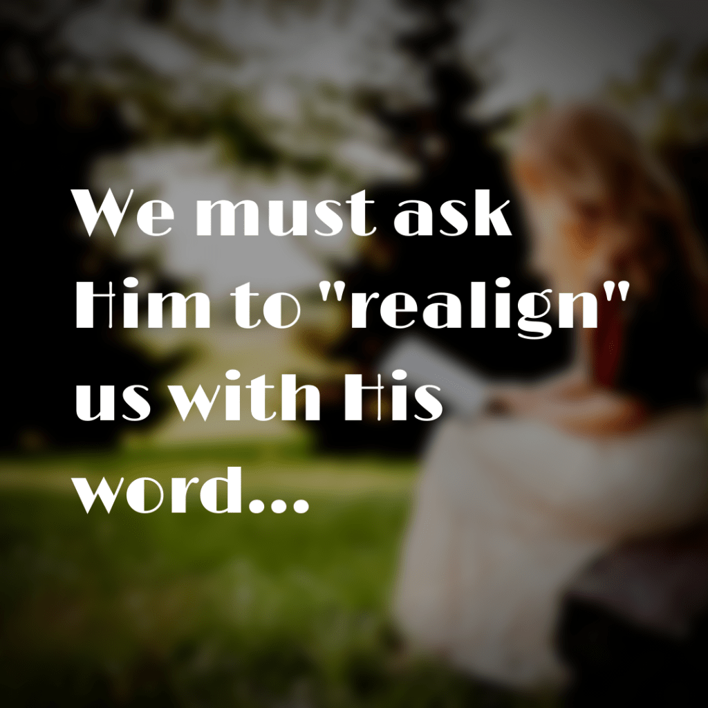 The Lord has been prompting me more and more that when I pray to pray for ‘realignment’. Specifically, realignment with His word, the Bible. Why?