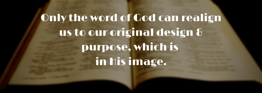 Man was created in His image (Genesis 1:26-27).That means he was aligned with God & His Word from before he was even created. God spoke about (verse 26) and then created (verse 27) man in His image (which is holy and pure and true and…).When man sinned, he fell out of alignment with God & with His Word. When we sin today, we too are out of alignment with how God created us to be. We repent by acknowledging our sin, seeking his forgiveness and asking for His help to turn away from sin or anything that keeps us separated from Him. We must ask Him to realign us with His word which is holy and pure and true and…