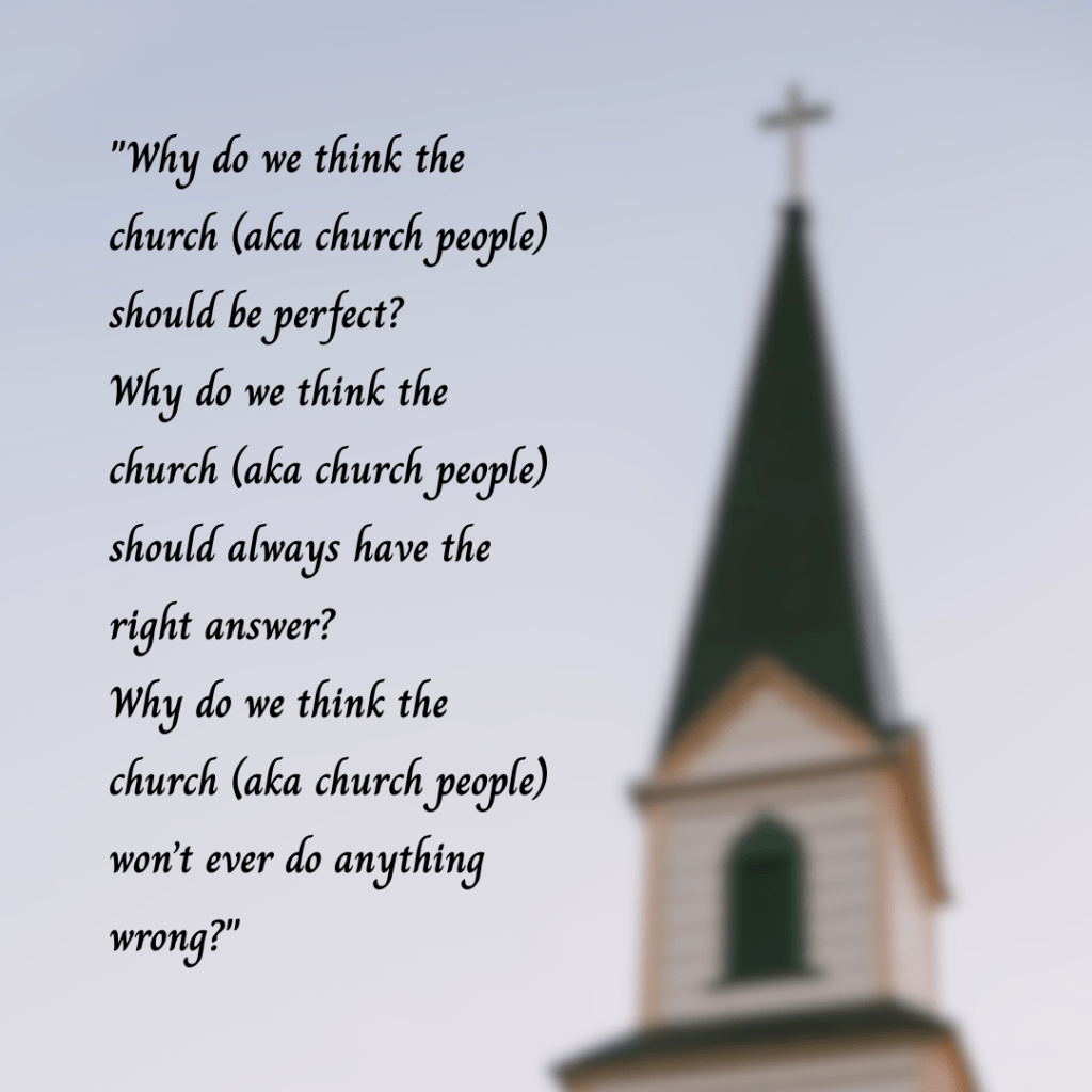 Not trusting people. Trust in the Lord, which is why I recently wrote, “Church. It’s not what you think.” In that post I said, “Why do we think church (aka church people) should be perfect? Why do we think church (aka church people) should always have the right answer? Why do we think church (aka church people) won’t ever do anything wrong?“